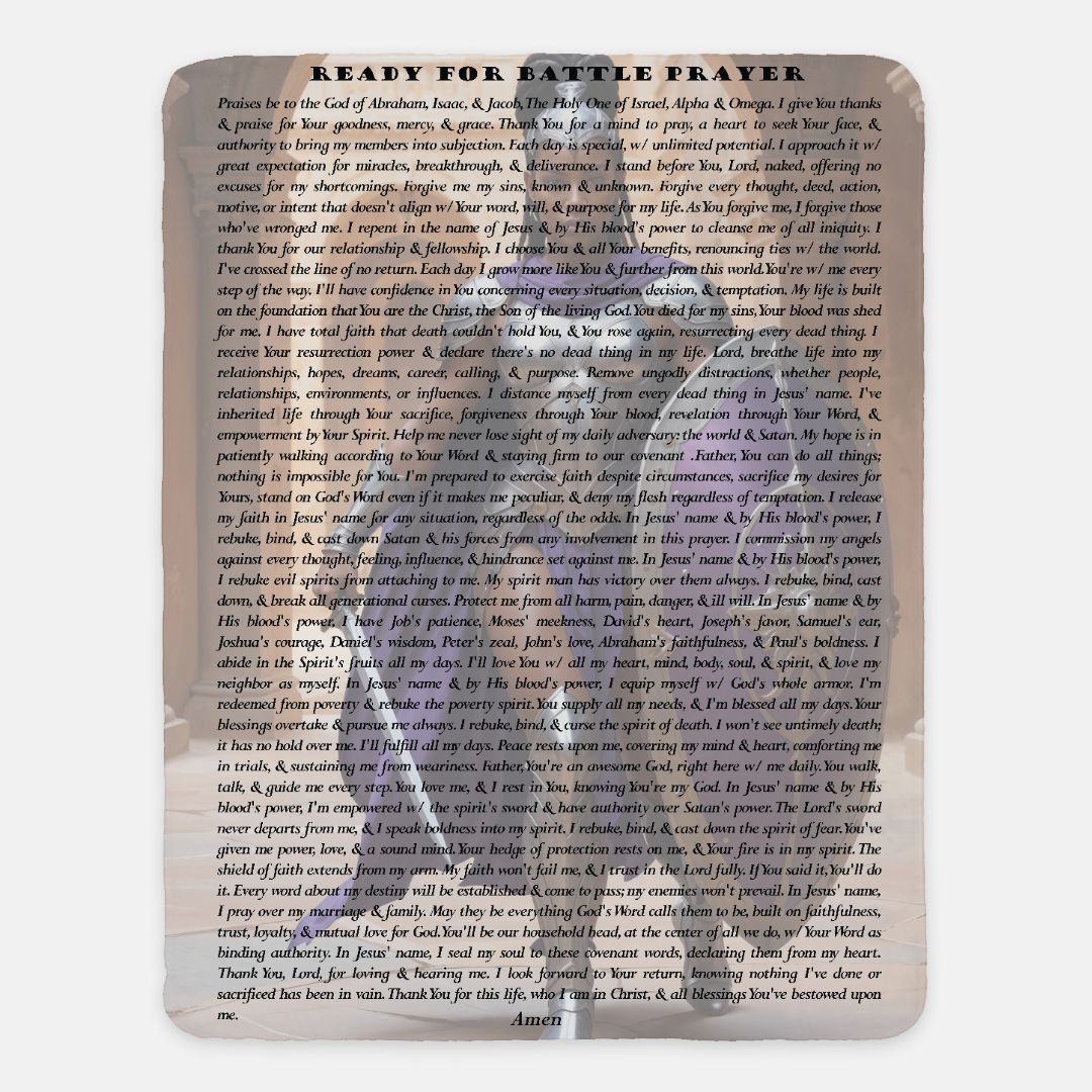 Do you struggle to maintain consistent prayer time in your busy life? The Ready for Battle Prayer Blanket transforms any space into your sacred prayer closet. Simply wrap yourself in its 60" x 80" embrace and let the complete "Ready for Battle Prayer" text guide your heart into deeper communion with God.